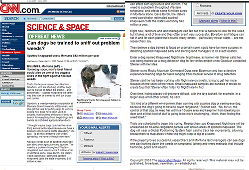 Some day soon, man's best friend could also be one of his biggest allies in the fight against noxious weeds.