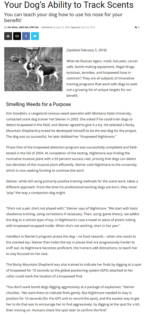 Hal Steiner and Knapweed Nightmare were featured online in the Whole Dog Journal Here is a condensed look at the article: