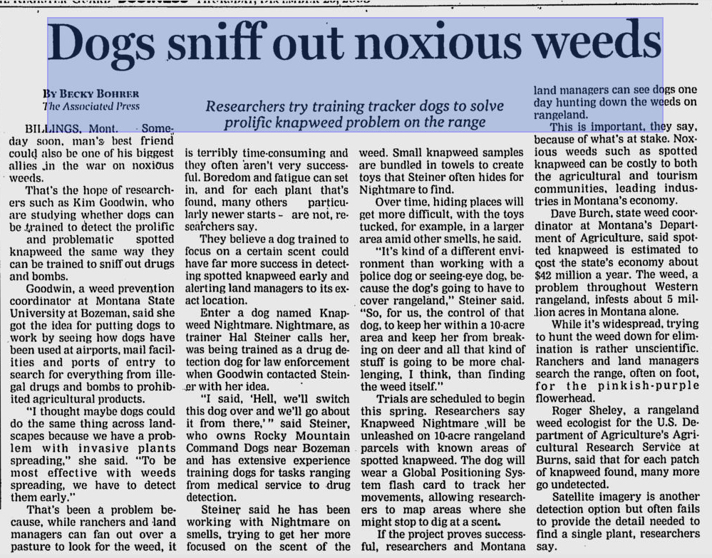 "We'll switch this dog over [from law enforcement detection training] and we'll go from there," said Hal Steiner, who owns Rocky Mountain Command Dogs and has extensive experience training dogs for tasks ranging from medical service to drug detection.
