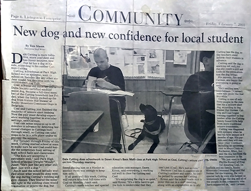 Coal can sense seizures up to 45 minutes in advance by detecting hormonal changes in Dale's body trough smell, so he can take steps to be in a safe place and/or to prevent the seizure. In a tv interview, Dale's father was quoted as saying the dog had reduced incidents of seizure from over 20 down to a handful or less.