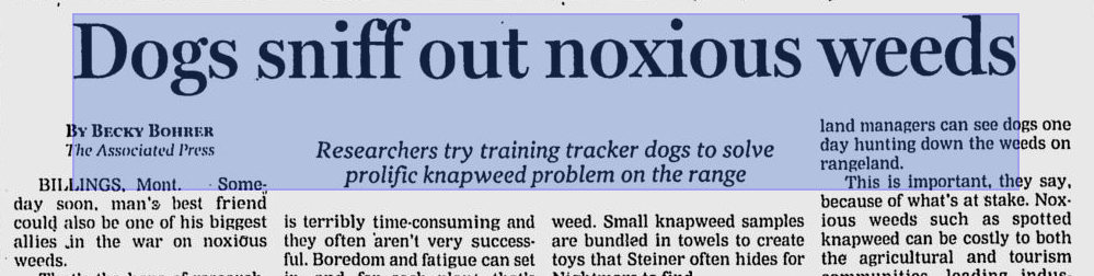 Read more: Researchers Try Training Tracker Dogs to Solve Prolific Knapweed Problem on the Range